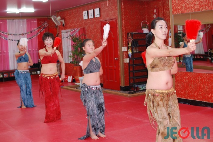 댄스복을 갈아입은 수강생들이 정면에 설치된 거울을 기준으로 길게 늘어선다. 자신의 모습과 자세를 볼 수 있게 하기 위해서다. 그런 다음 소형 녹음기를 통해 흘러나오는 음악에 맞춰 밸리댄스를 추기 시작한다. 원생들의 댄스가 진행되는 동안 카랑카랑한 정 원장의 목소리가 이따금 음악을 뚫고 원생들을 압도한다.